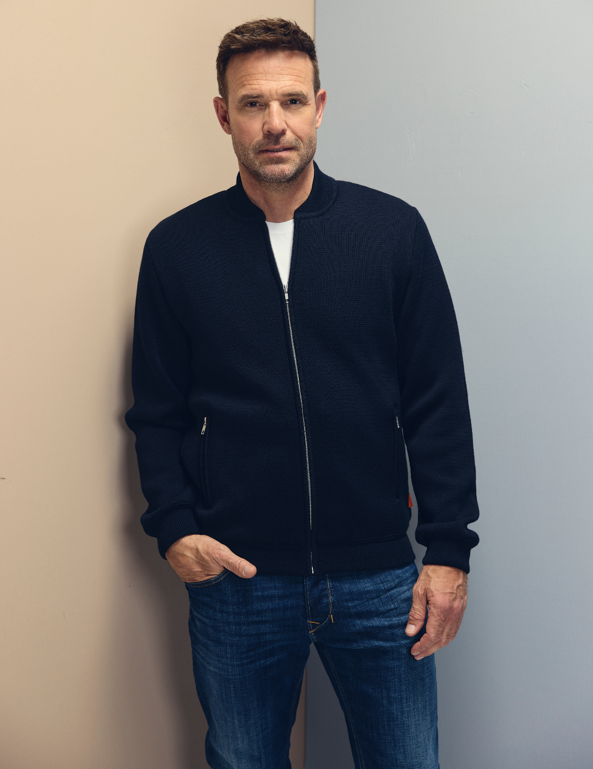 Clipper Explorer EDINBURGH zip cardigan with Meida lining. With inside pocket and side pockets with zipper. Modern fit.